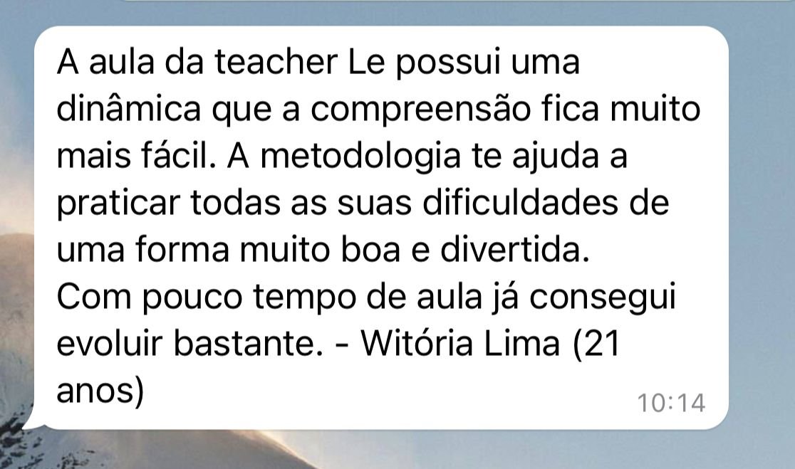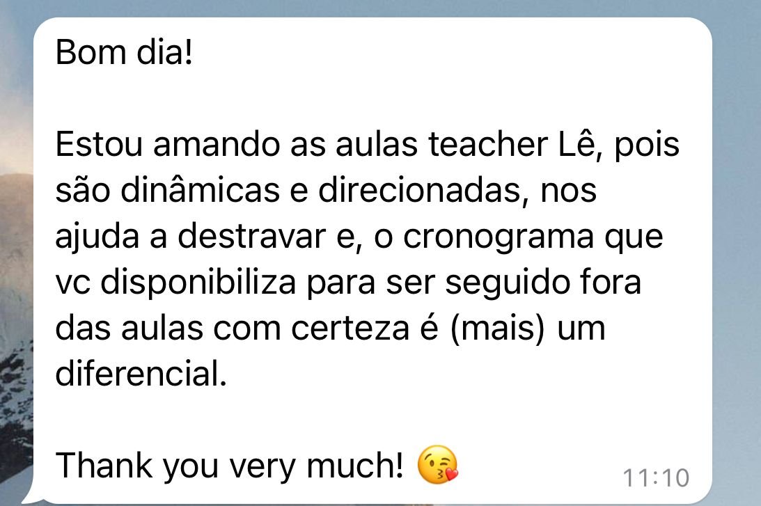 Além disso, todos os alunos têm 35% de desconto no Curso Intensivo de 30 dias, com aulas ao vivo diretamente com a professora e tutores de apoio, garantindo acompanhamento personalizado e aceleração no seu progresso em inglês.